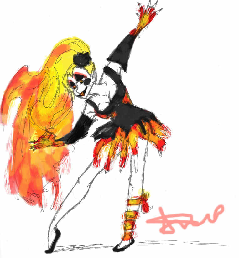 idk what's going on here she's some kind of fire-eater/thrower/clown thing idk whatever here just enjoy it