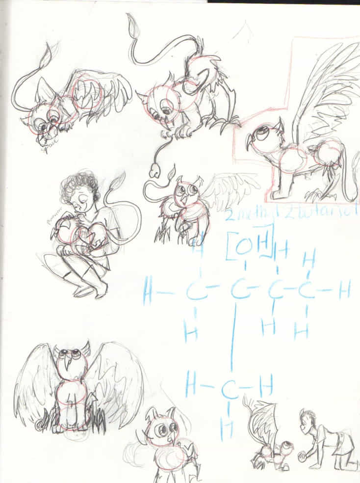 2: Flint! in which I practice drawing baby griffins and pride myself in the ability to draw at least one okay-looking animal. Also, spontaneous Lokisons. And a 2-methyl 2-butanol molecule. um ignore that.