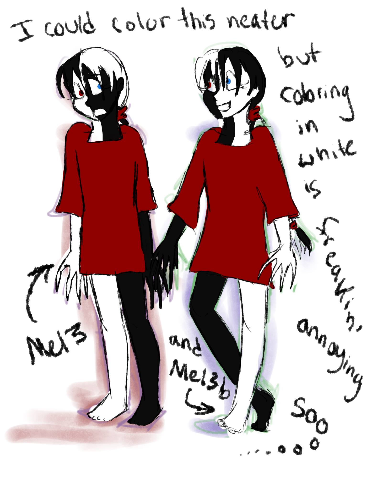 also coloring Meli's colors on the opposite sides is REALLY WEIRD