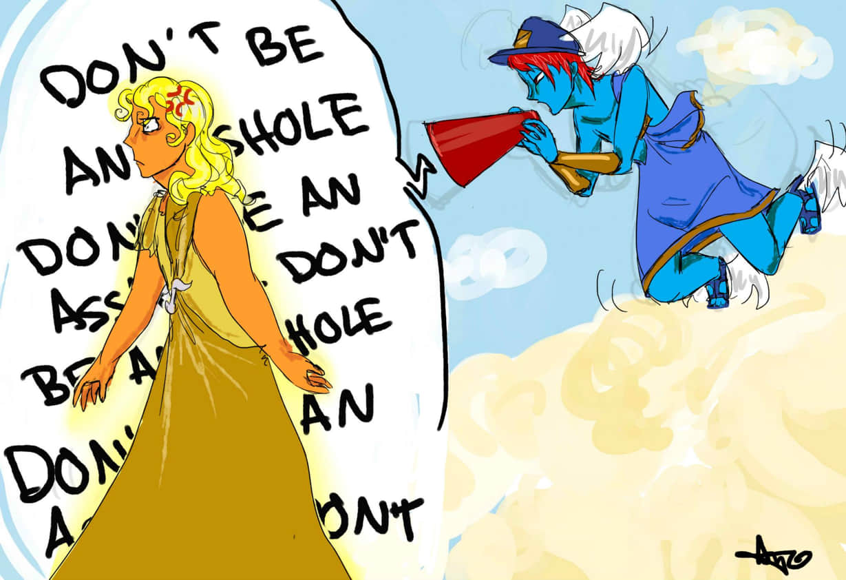 whenever apollo does something particularly dickish or stupid hermes takes the time out of his busy day to follow him around with a megaphone yelling ever helpful reminders at him until apollo snaps and attacks him with his own caduceus