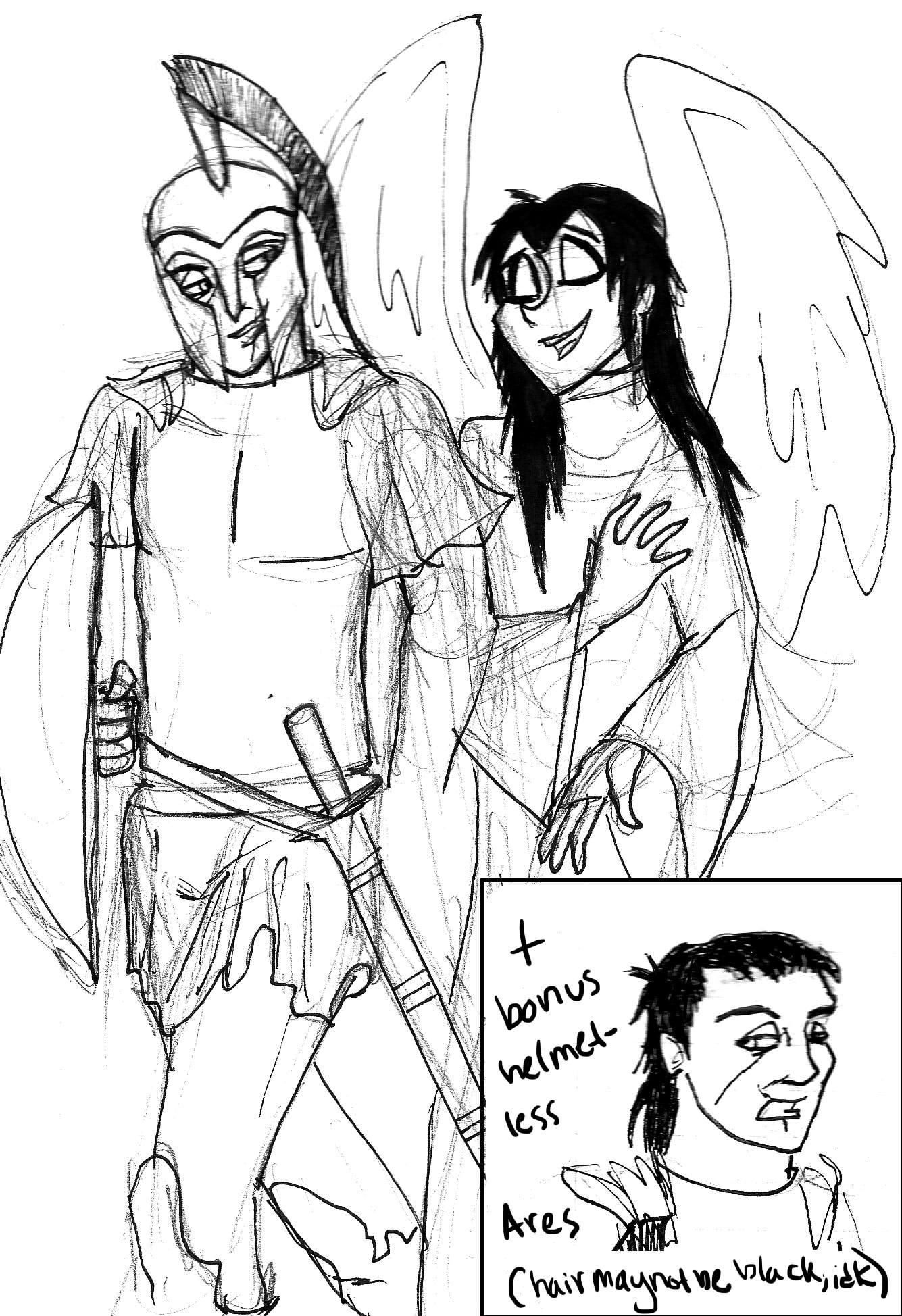 Drew this forever ago but I just now finally got around to coloring it, oops. Ares definitely needed to be redesigned (in Hercules/the series he was a short fat balding man played for comedic effects). Athena could have stayed the same, since I really liked her design, but ehhhh I was already redesigning Ares so whatever why not. (Her voice from the series can stay the same though, that was SPOT ON)
