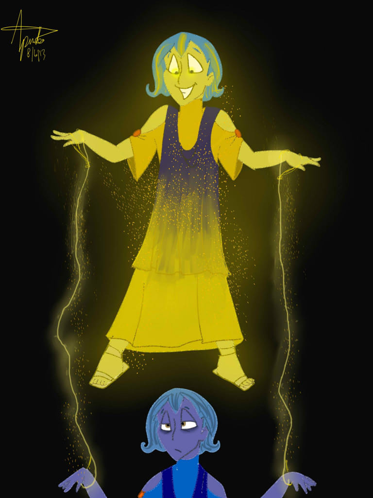 Those strings aren't lightning, think of them as pretend puppet strings. He's got to move his corporeal body around somehow when he's not in it.
