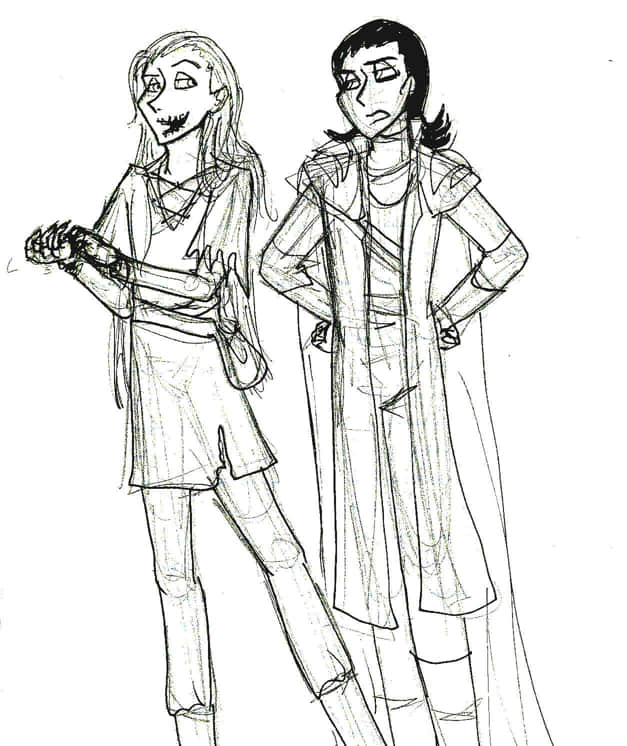 Myth!Loki and Marvel!Loki. way too lazy to color this one. all I will say is that two Lokis in one spot is way, way too many Lokis