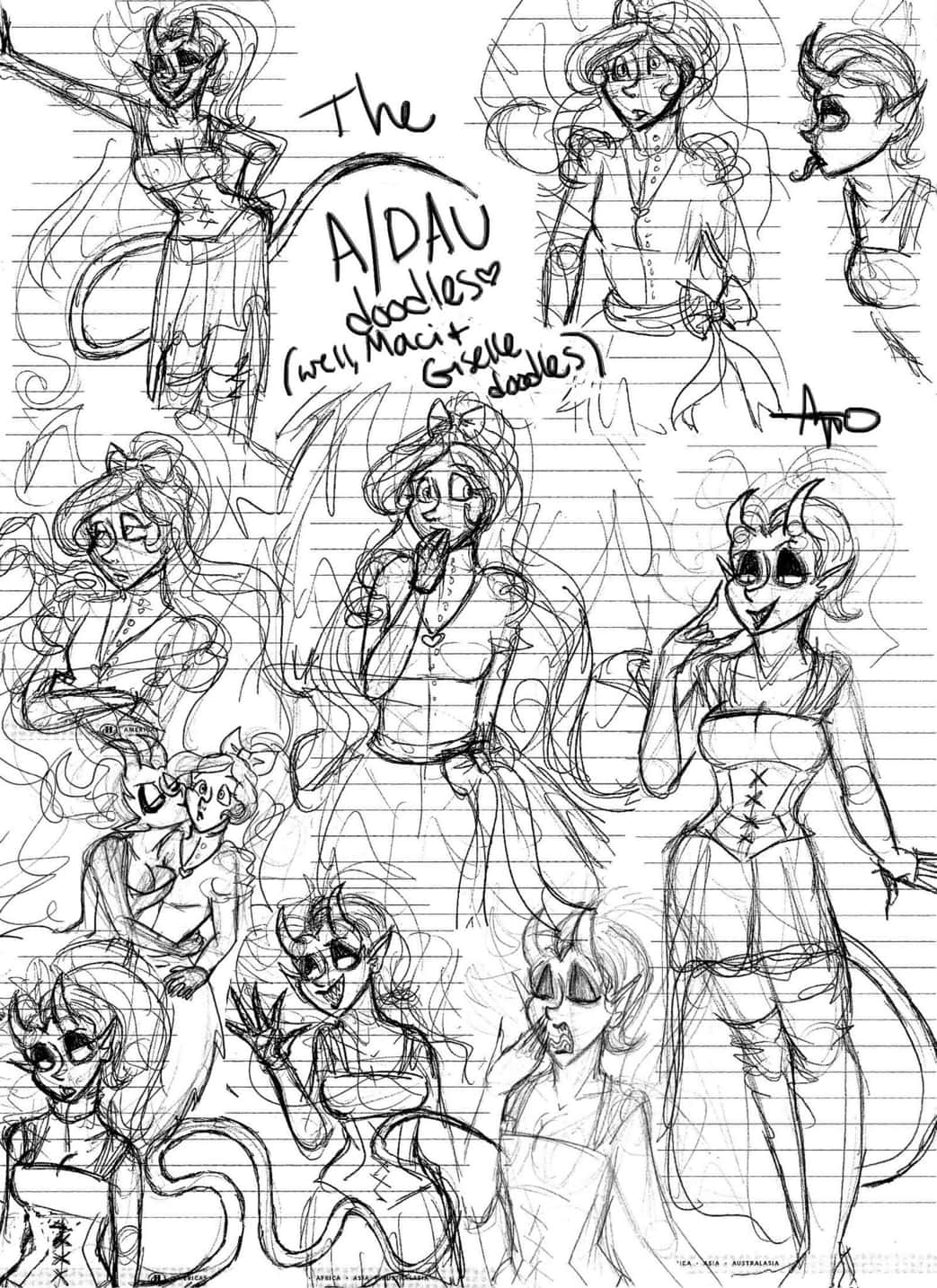sketchdump! ...sort of. i'd been doodling ADAU!Maci and Giselle for a while and i just never got the chance to compile all of them, haaa