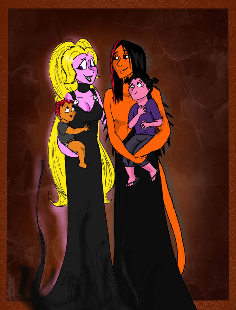 By that, I mean that this picture is one of three and is the last one out of the three: the previous two are, first, this same type of drawing except with the Euriales family, and the second is a comic of Maci yelling at yours truly for spending time and effort drawing the newly born Euriales baby and not having done anything with Rasmus, Maci and Tory's second kid who has been around for like two months. WHOOPS